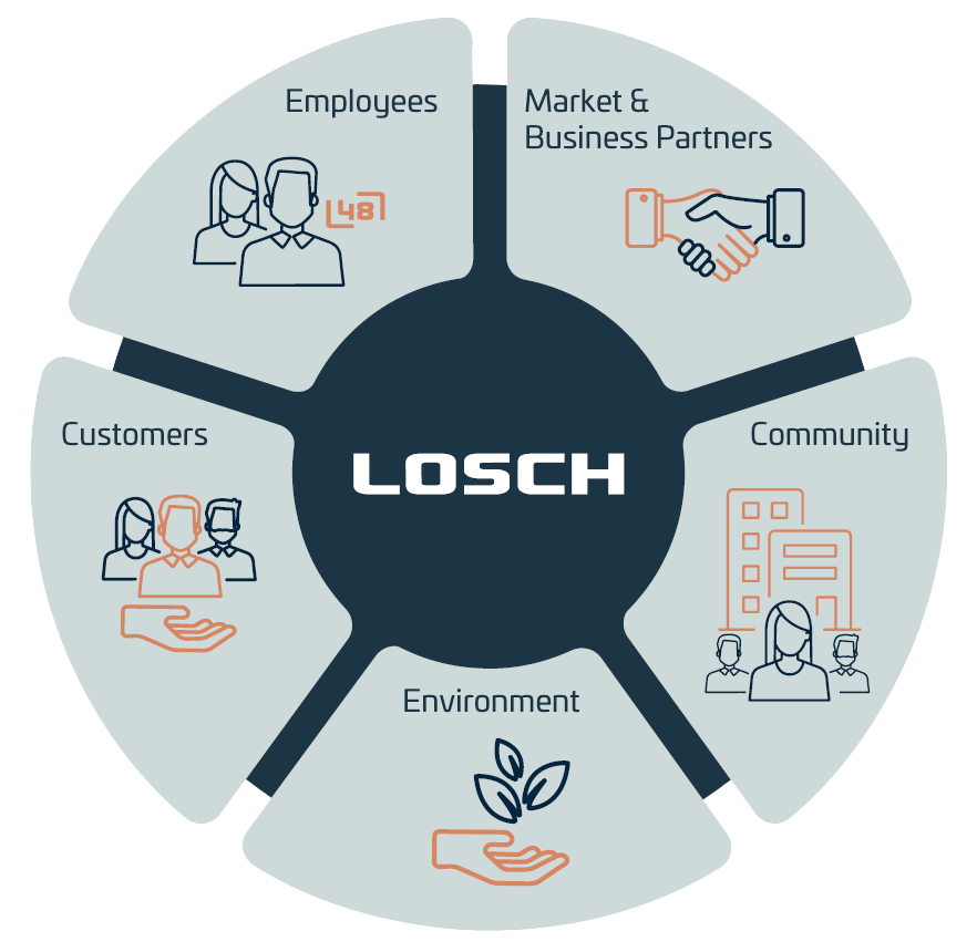 LOSCH is convinced that social responsibility, diversity, and sustainable management of our business activities are of essential importance. As a company, we have therefore committed ourselves to the guidelines and procedures of the CSR principles outlined below.